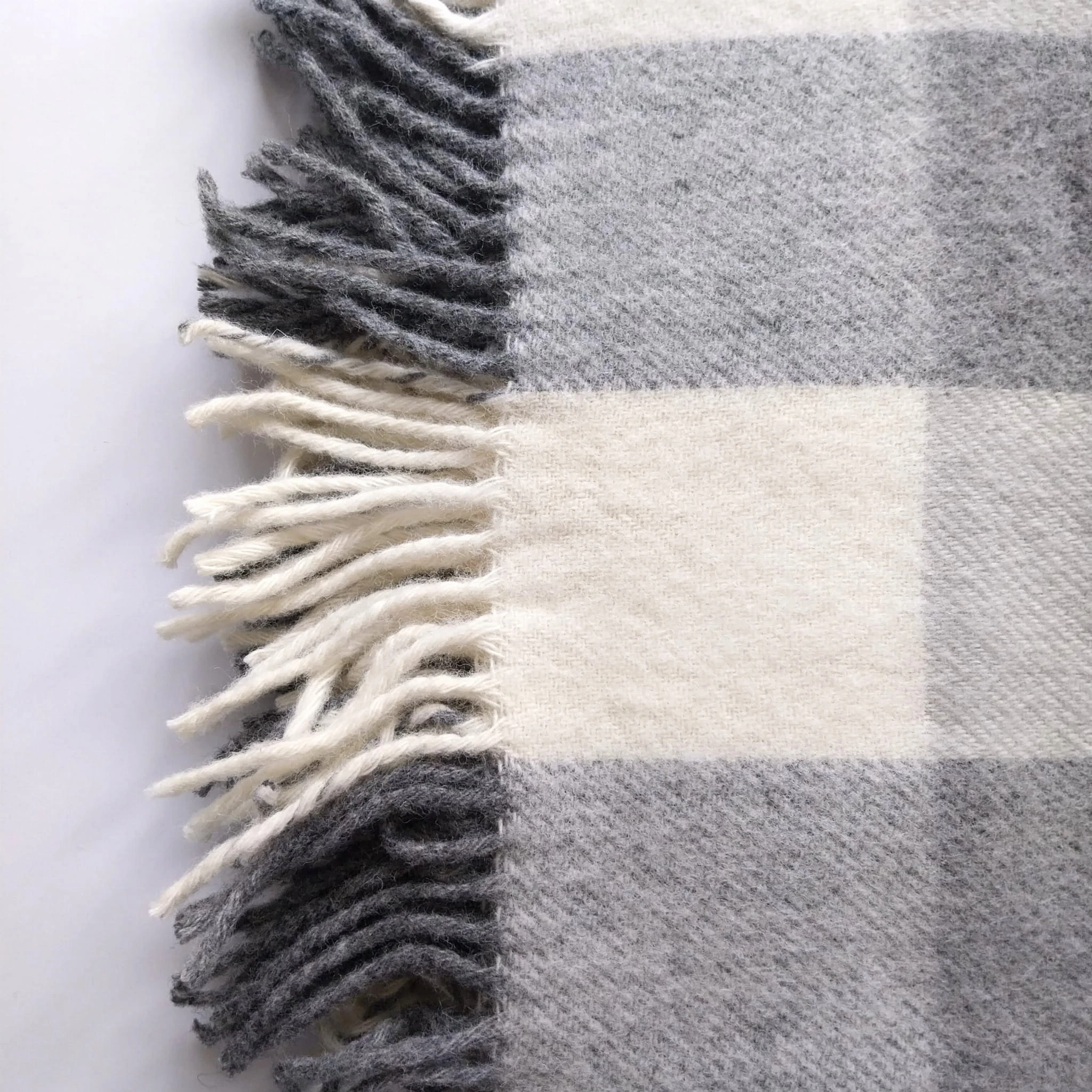 Koc z wełny nowozelandzkiej w szarą szachownicę